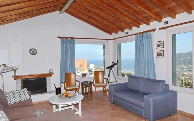 Two bedroom Villa with swimming pool and views to the Aegean Kitchen. It is located in a very nice area with very easy access. There are lovely outside areas with a swimming pool and a bbq area. The plot size is 1.400m2 and the villa approximately 100 m2. It has 2 bedrooms, 2 bathrooms, kitchen, living/dining room. Idea property for families and very easy to rent
