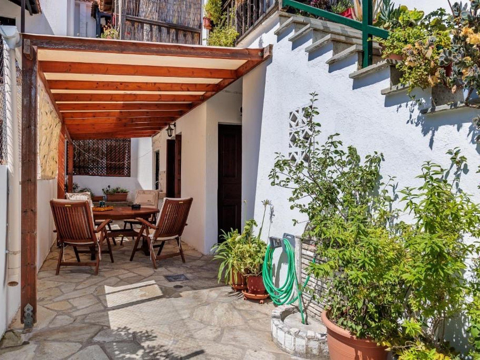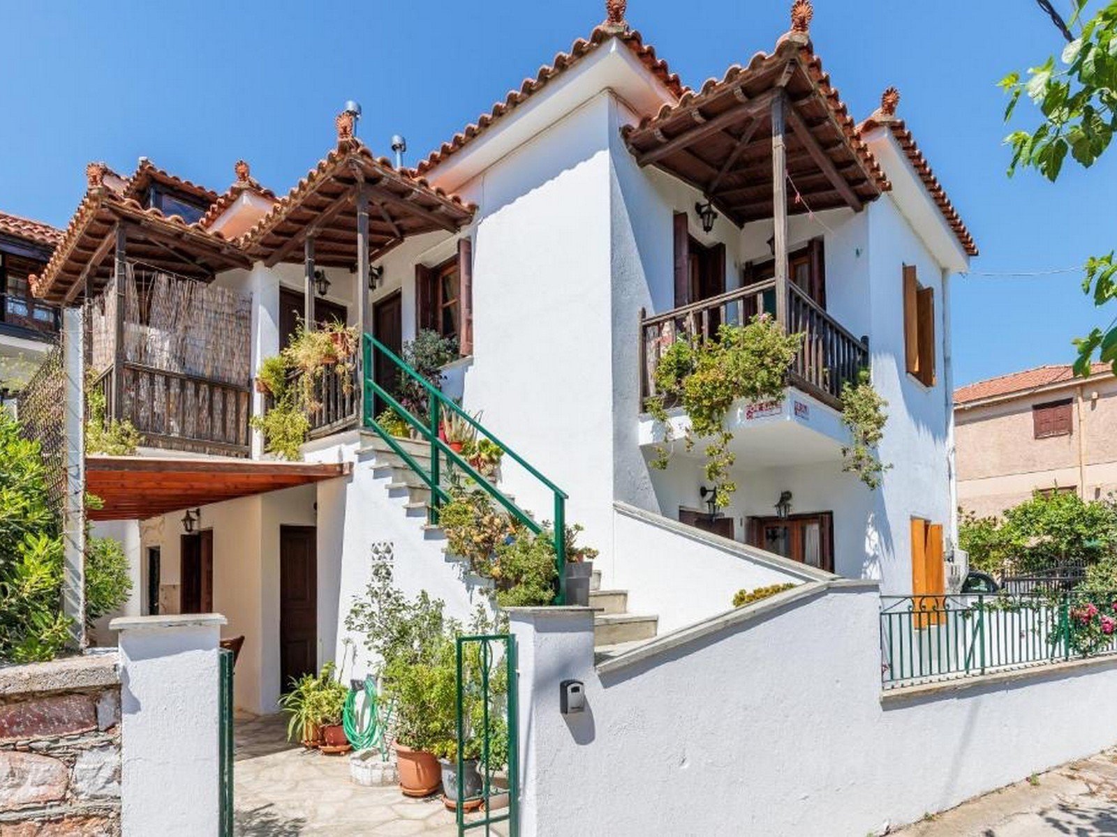 This property is located within Skopelos Town and consists of two independent apartments. It is arranged over two floors, with one self-contained apartment on each level. The property is in excellent condition and ready to move into. Each apartment features two bedrooms, two bathrooms, a fully equipped kitchen, and an open-plan dining and living area, as well as a generously sized balcony. The ground-floor apartment additionally benefits from a private garden area. Situated close to the port and all town amenities, this property is ideal for year-round living, while also offering great potential as a holiday home or rental investment.
