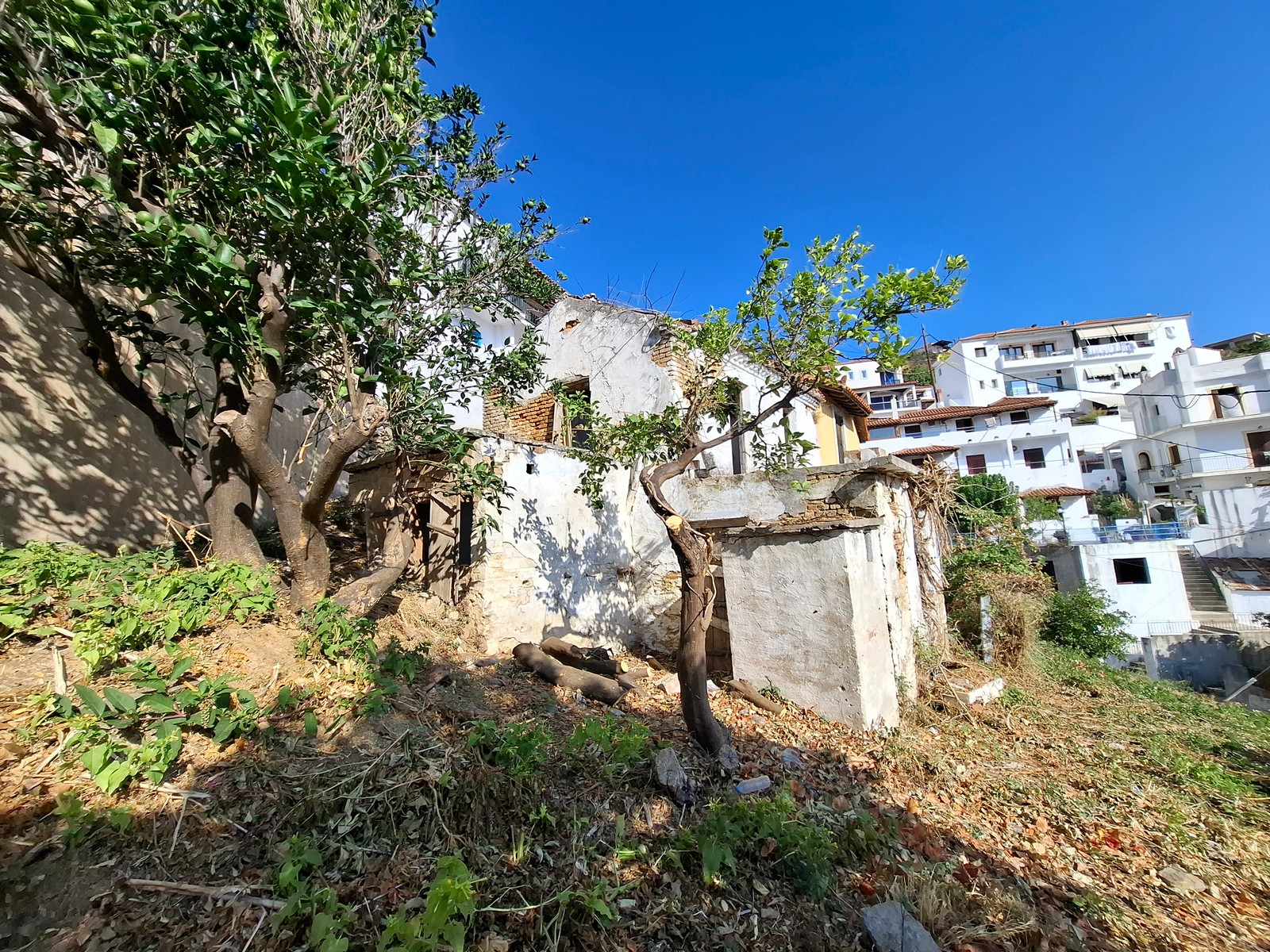 This spacious 570 m² plot features a ruined two-storey building of 62 m². Located within the city plan, the land allows for an additional 450 m² of construction, making it an ideal property for commercial development. Conveniently situated near the ring road, it offers easy access and stunning views of Skopelos Town and its port. The area is quiet and suitable for building projects.